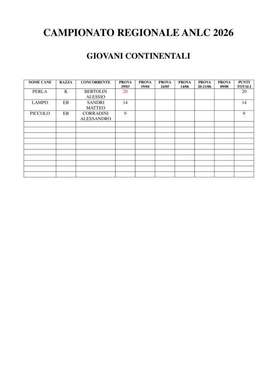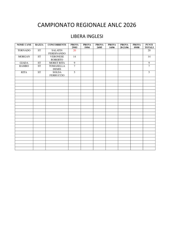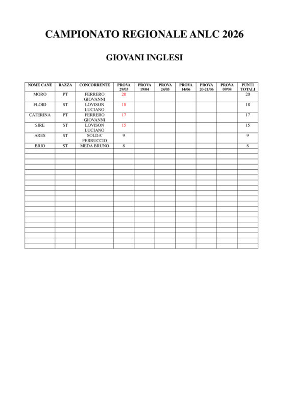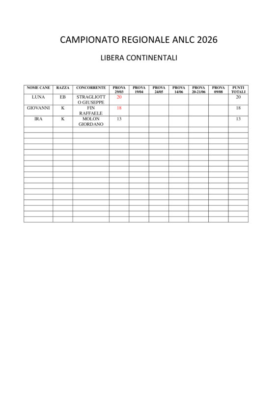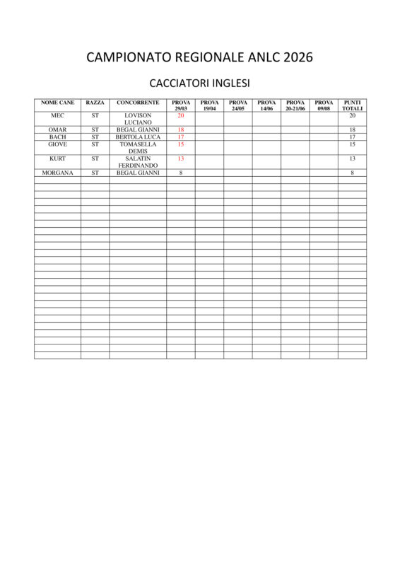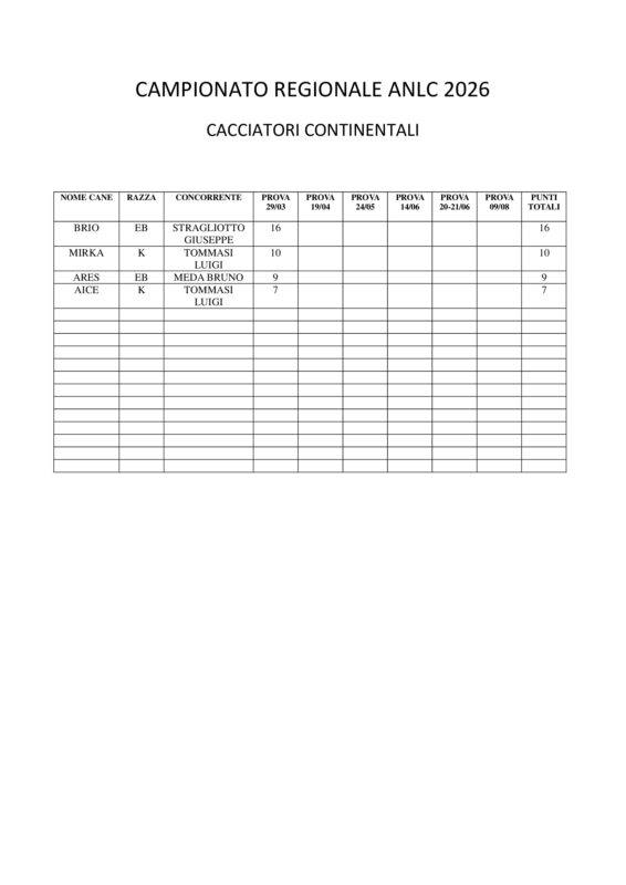 CLASSIFICHE GENERALI CAMPIONATO REGIONALE SU SELVAGGINA LIBERATA